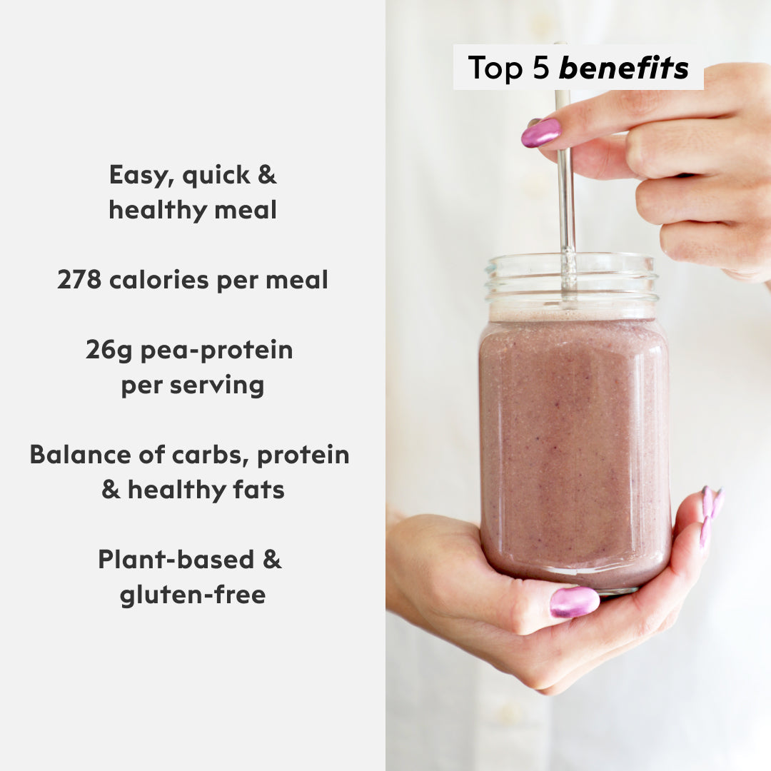 Each serving boasts 27-30g of pea protein, making it perfect as a high-fiber breakfast or a light, satisfying lunch. Just shake in a shaker with water and ice.